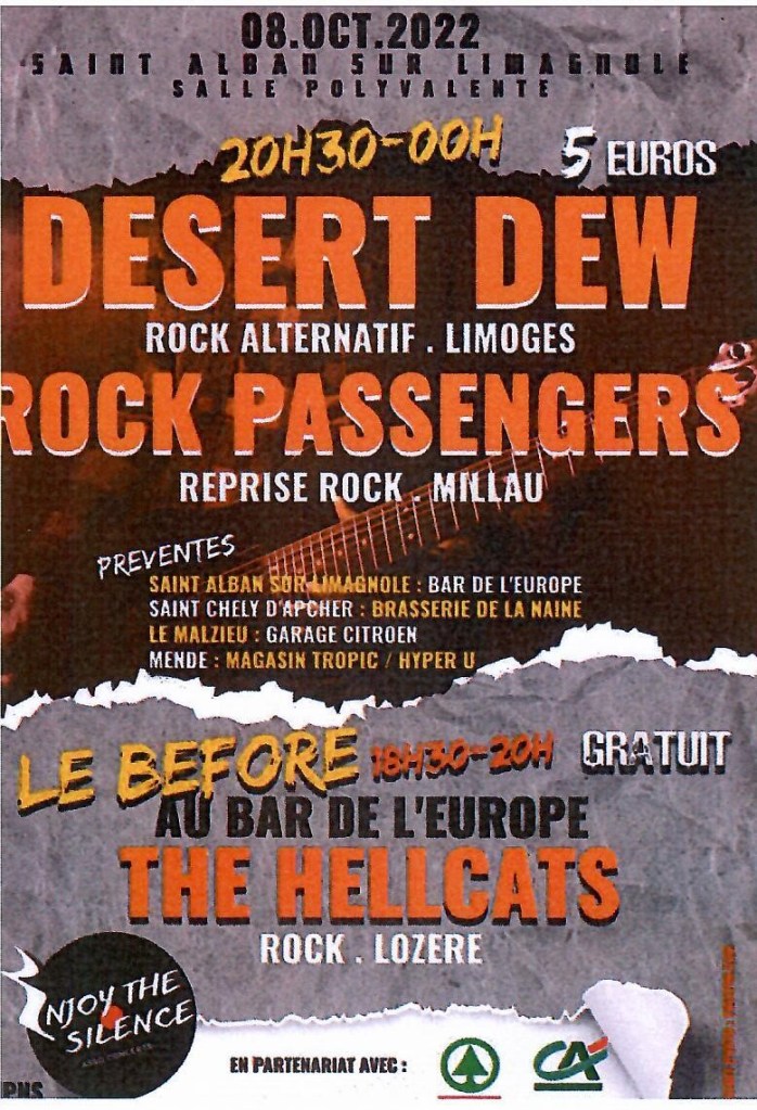 Enjoy the Silence, une nouvelle association concert organise son premier évènement Rock sur Saint Alban le 8 Octobre 2022 à la Salle Polyvalente