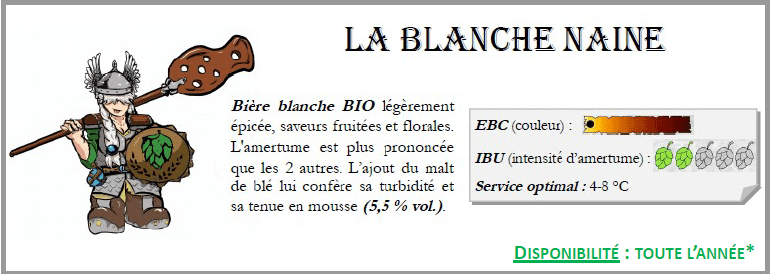 La Blanche Naine (blanche) ; 33cl : 2€70 ; 75cl : 4€70