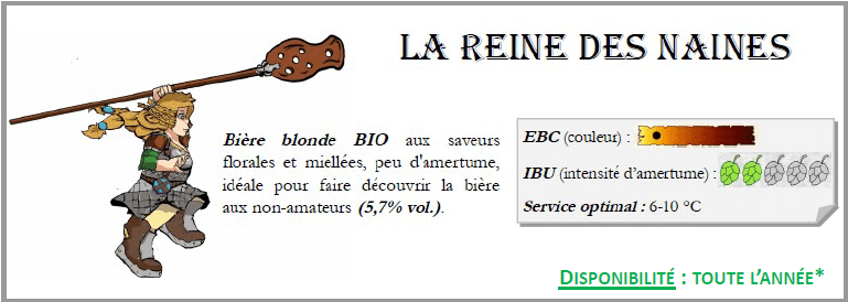 La Reines des Naines (blonde) ; 33cl : 2€70 ; 75cl : 4€70