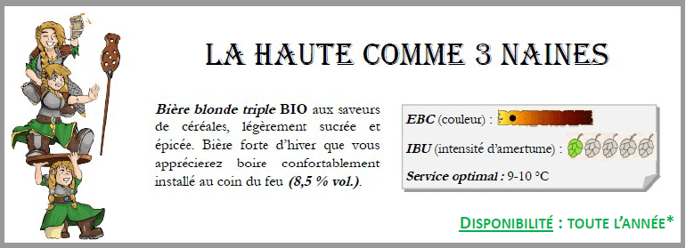 Bières Spéciales : Haute Comme 3 Naines – Médiév’ale – Naine Futée – Naine Sauvage – Naine Perdue