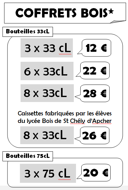 GAMME SAISONNIÈRE : 33 cl : 3,20 € – 75 cl : 5,70 €