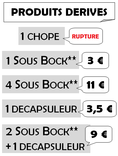 | 12 bières de la gamme | 33€ | 6 bières de la gamme | 30 € | |